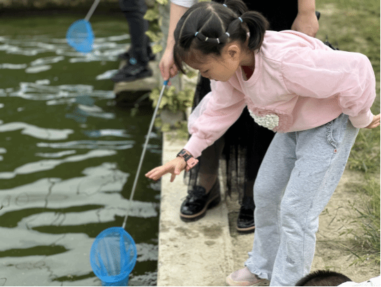 “平时工作忙,很少有机会这样亲近大自然,”青年教师边帮孩子整理捞鱼网一边说,“这样的活动既放松了心情,又增进了同事之间的交流,真的很不错。”